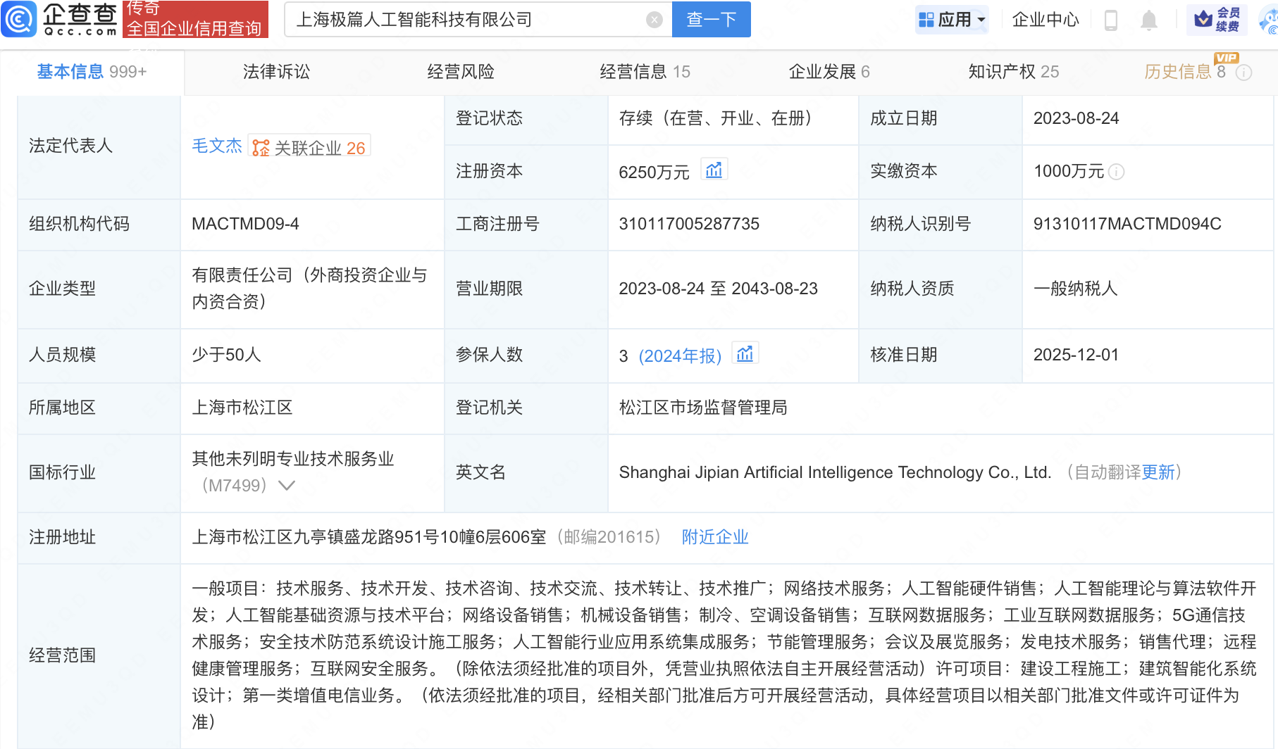 近日,上海极篇人工智能科技有限公司发生工商变更,新增华丰股份(605100)为股东,同时注册资本增至6250万元。企查查信息显示,该公司成立于2023年配资公司查询,法定代表人为毛文杰,经营范围包含:人工智能硬件销售;人工智能理论与算法软件开发;人工智能基础资源与技术平台等。